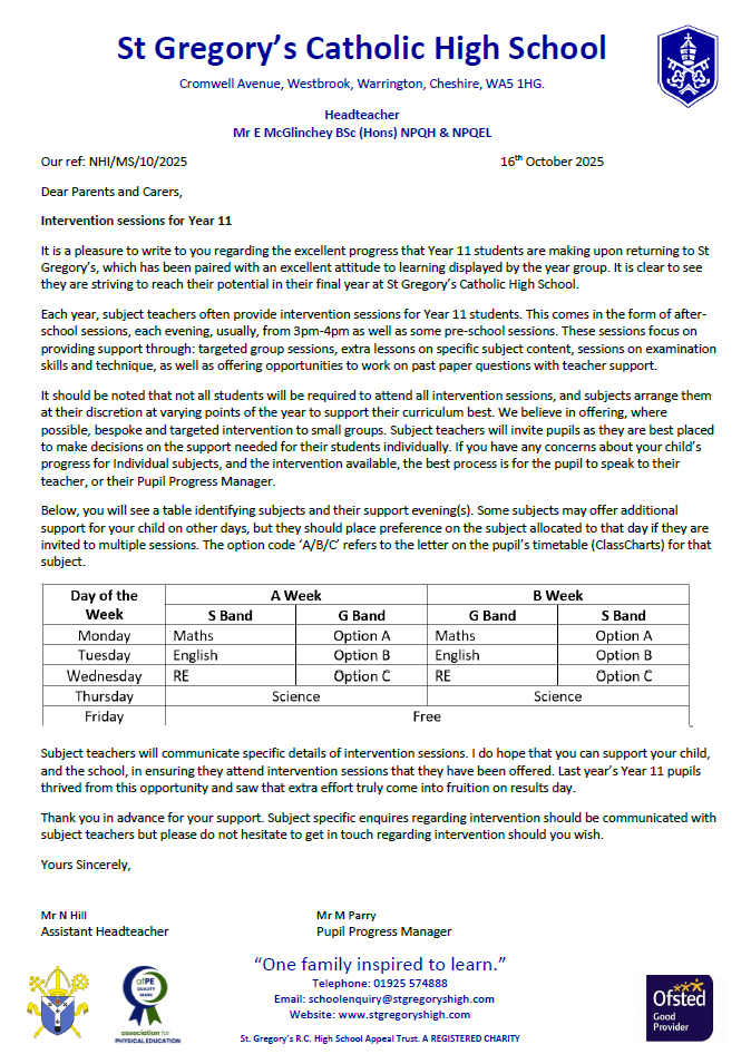 St. Gregory's Catholic High School is fully committed to ensuring all pupils fulfil their true potential.  To support them in their learning journey from Y7 to Y11, we provide a range of packages offering guidance, advice and support.
